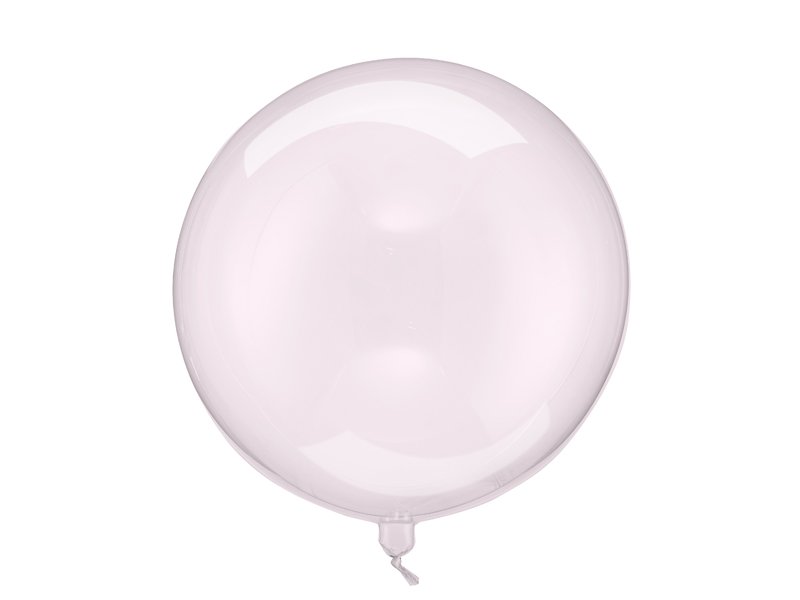 Balão tipo bubble em forma de esfera, num bonito tom de rosa transparente. Com o seu acabamento leve e translúcido, é ideal para criar decorações elegantes e modernas.