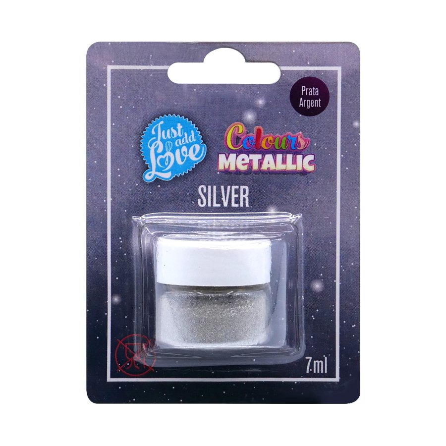 O Colours Metallic Prata – Corante em Pó 7ml é perfeito para dar um efeito luxuoso e metálico às tuas decorações de cake design.
