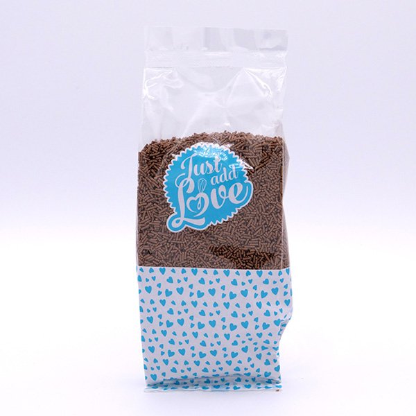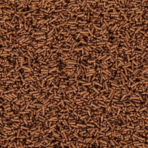 Granulado de chocolate de leite para decoração de bolos, bolachas, cupcakes, cake pops, donuts, brigadeiros, sobremesas e outras preparações.