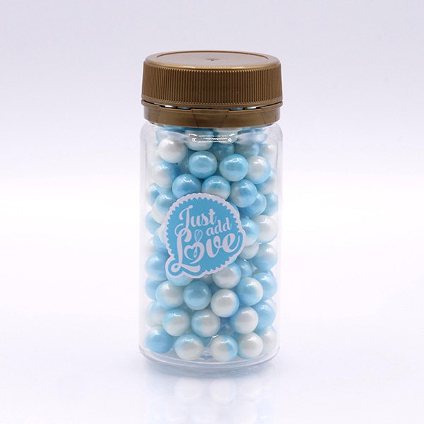 As Pérolas de Açúcar Multicolor Azul e Branco 5mm – Frasco 65g são perfeitas para dar um toque colorido e delicado às tuas criações de pastelaria e cake design.