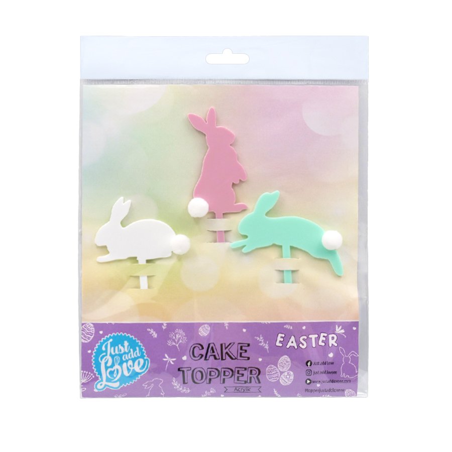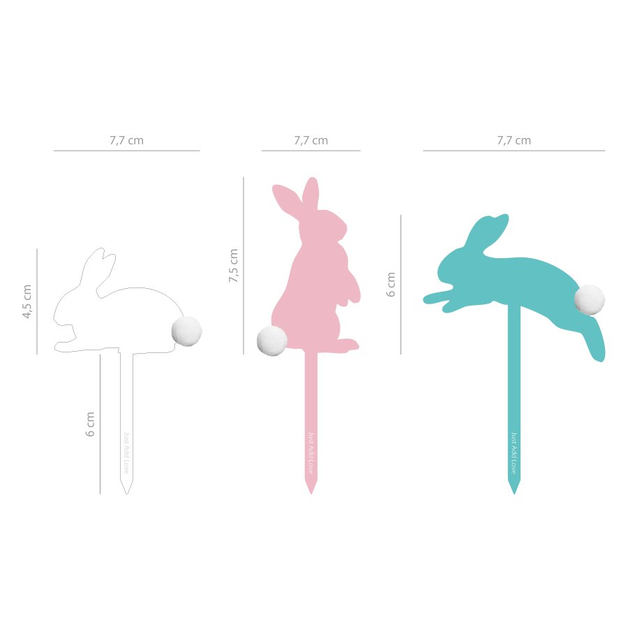 Dê um toque especial aos seus bolos de Páscoa com este conjunto de toppers em forma de coelho com pompom. Perfeitos para quem gosta de criar bolos caseiros bonitos e temáticos, estes toppers transformam qualquer bolo simples numa peça encantadora.
