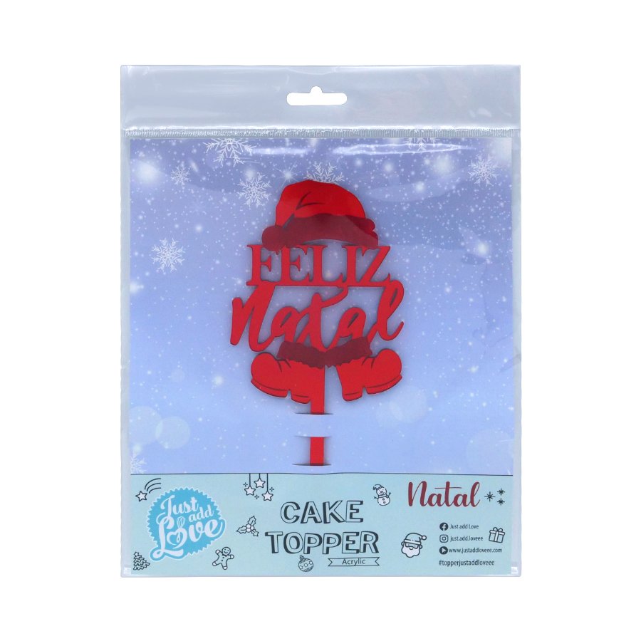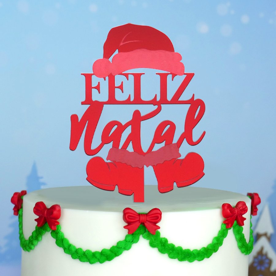 🎄 Dá um toque especial e mágico aos teus bolos com este lindo Topper “Feliz Natal” em acrílico vermelho!