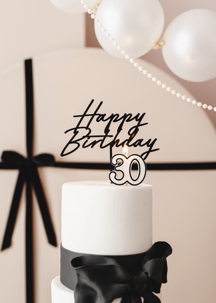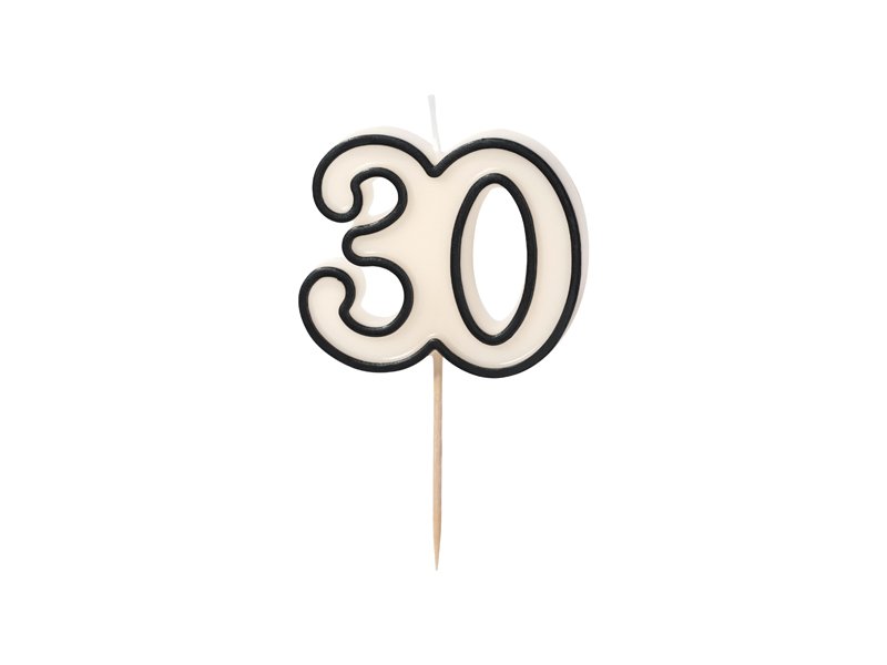 A Vela de Aniversário Número 30 Preto e Branco 5,5cm é perfeita para marcar uma data especial com estilo.