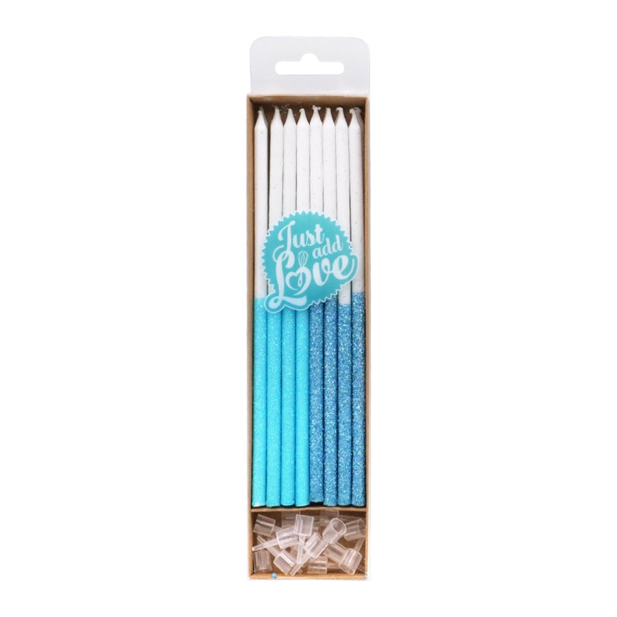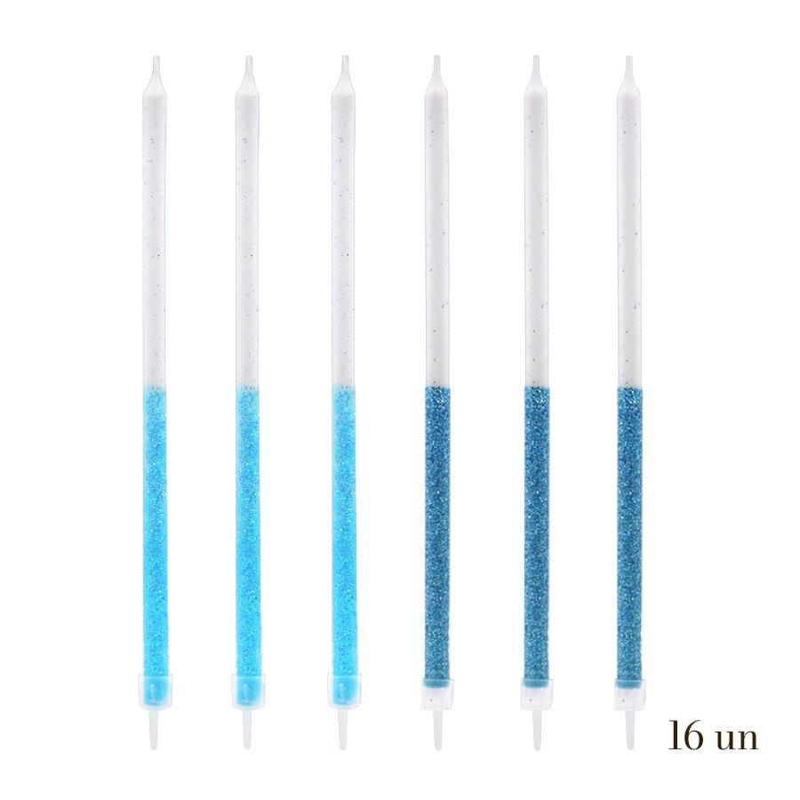 Velas Altas com Glitter – Azul e Branco (16 un.)
